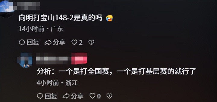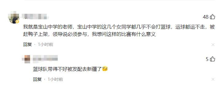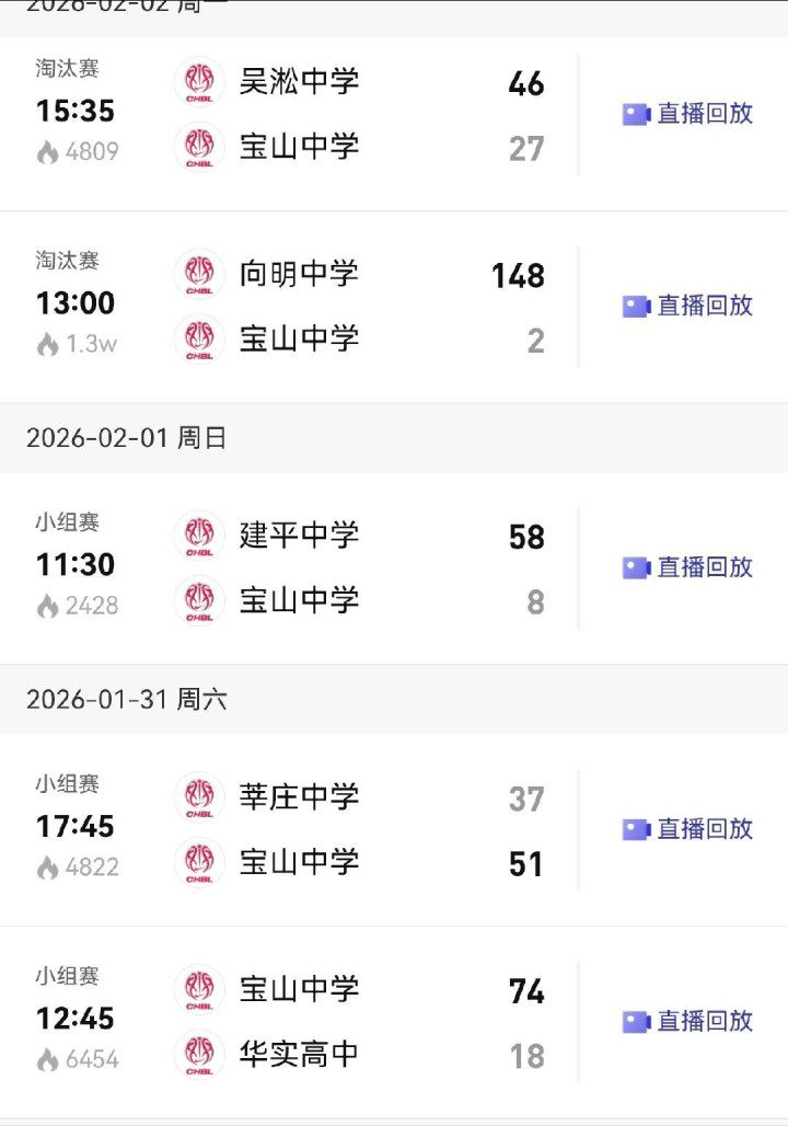 有人翻出宝山中学的赛前战绩,1月31号她们还先后以51比37、74比18连赢两场,这说明她们不是完全不会打球,只是碰到向明中学这种断层级强队。