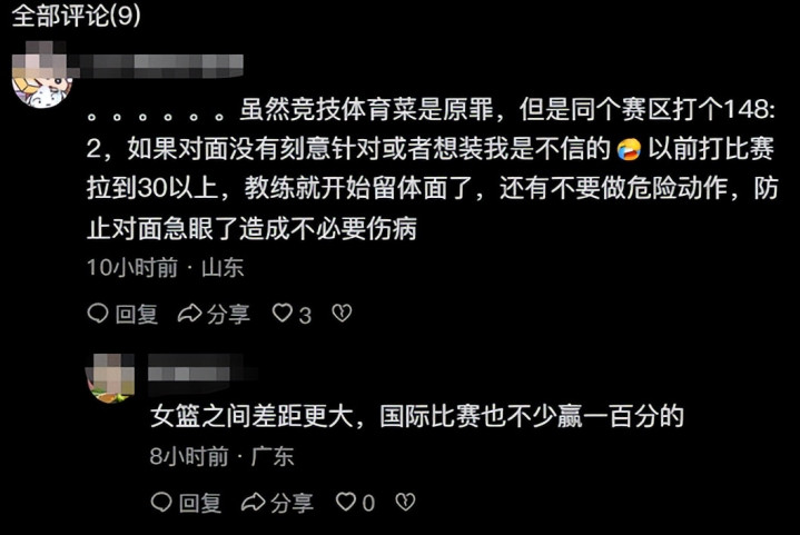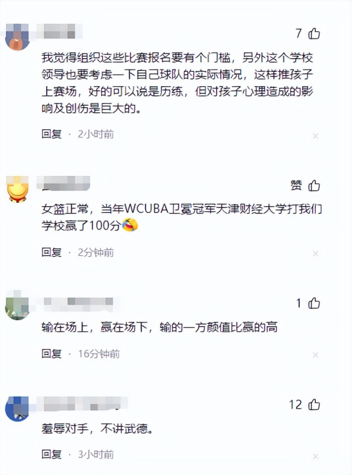 之前CUBA比赛中,领先50分以上时,教练都会主动换主力、放缓节奏,这既尊重对手,又体现体育精神,反而能赢得更多认可。